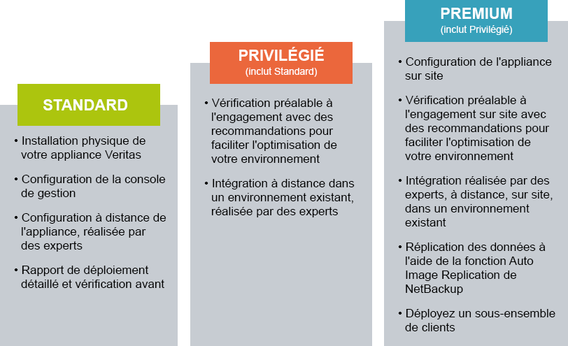 Tirez parti de l'installation et de la configuration personnalisée de l'appliance par un expert Veritas.
